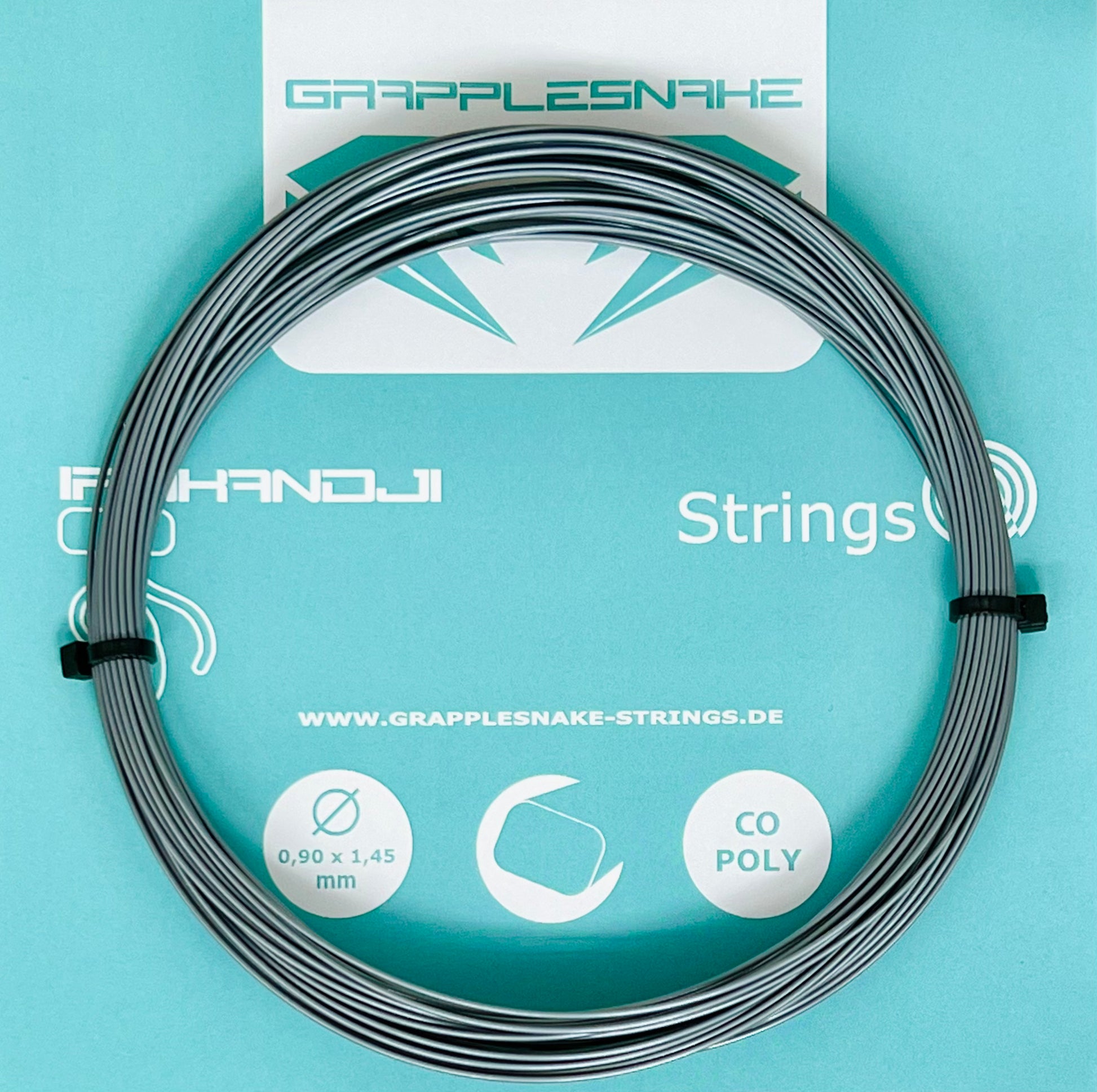 Grapplesnake Irukandji is a co-polyester string. Co-polyester suits competitive players who prioritize control and spin — its low-powered character rewards full, aggressive swings. See community reviews for individual player feedback.