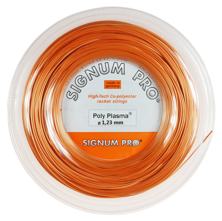 Signum Pro Poly Plasma is a co-polyester string. Co-polyester suits competitive players who prioritize control and spin — its low-powered character rewards full, aggressive swings. See community reviews for individual player feedback.