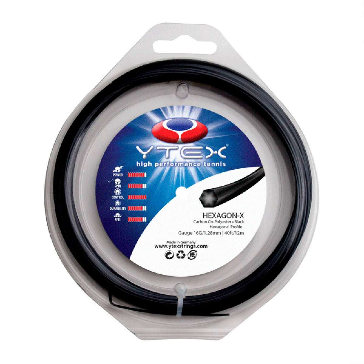 Ytex Hexagon X is a co-polyester string. Co-polyester suits competitive players who prioritize control and spin — its low-powered character rewards full, aggressive swings. See community reviews for individual player feedback.